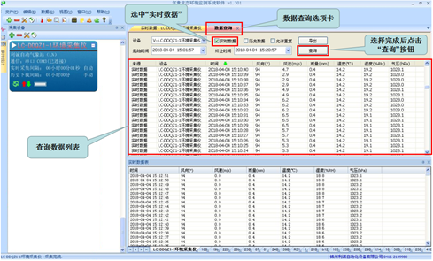 點(diǎn)擊“數(shù)據(jù)查詢”選項(xiàng)卡,進(jìn)入到數(shù)據(jù)查詢界面,將“實(shí)時數(shù)據(jù)”選項(xiàng)選中,然后選擇查詢的起始時間,點(diǎn)擊“查詢”按鈕,可以查詢實(shí)時數(shù)據(jù)。如下圖所示。